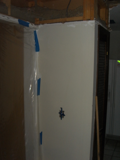 Normally I would say do it over from scratch, but with the price of copper to the point where people are stealing it from air conditioner coils, electrical boxes and nail guards look less expensive. Someone even tried steal the Jeep's radiator that was just sitting next to the garage! This guy rang the doorbell to see if anyone was home first. Nick was out on the patio cleaning the pool and couldn't get to the door in time, so Nick just watched him through the windows, and noticed him acting suspiciously . The guy looked around to see if anyone was watching, then picked up the radiator and started walking away with it. Nick walked out the front door and asked him, "Can I help you?" The guy quickly dropped the radiator behind the Jeep and asked if we had any car batteries we didn't need... I rushed home when he instant messaged me about it, but I'll finish that story another time... We're talking about the kitchen now.