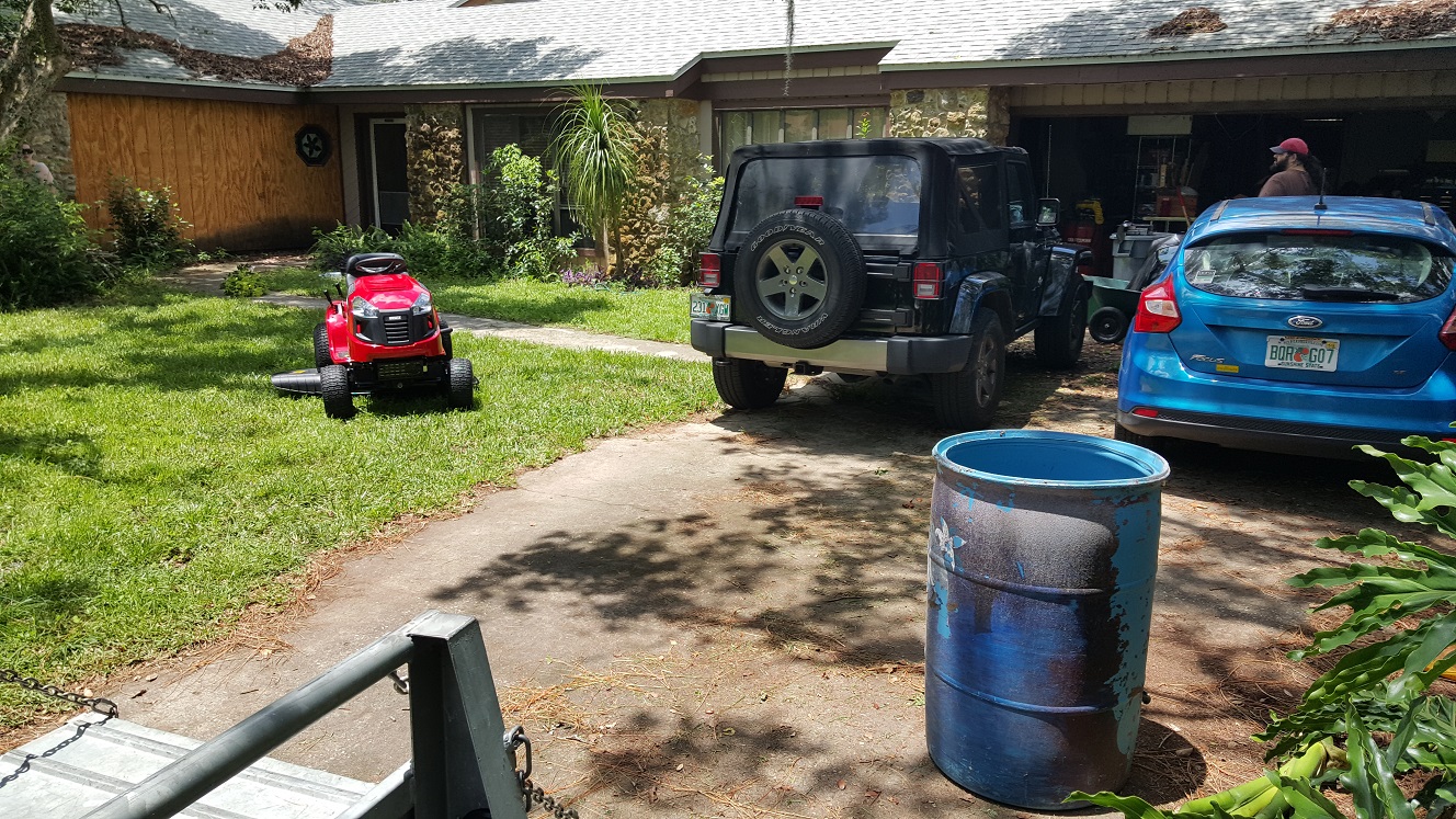 So Ann reserves a UHaul trailer online, then tries to go through the early checkout to save time at the store, but runs into a snag... She spends more time walking out to the truck to look at the numbers on the trailer hitch than we would have ever saved at the store, but hey, it's done now. Next she orders the tractor online with pickup at our store in Eustis, because online pricing, since the Apopka store wants $100.00 more for the same tractor? More online vs. in store stupidity. Go figure... We figure we'll get the trailer, get the tractor, then head to the other house.